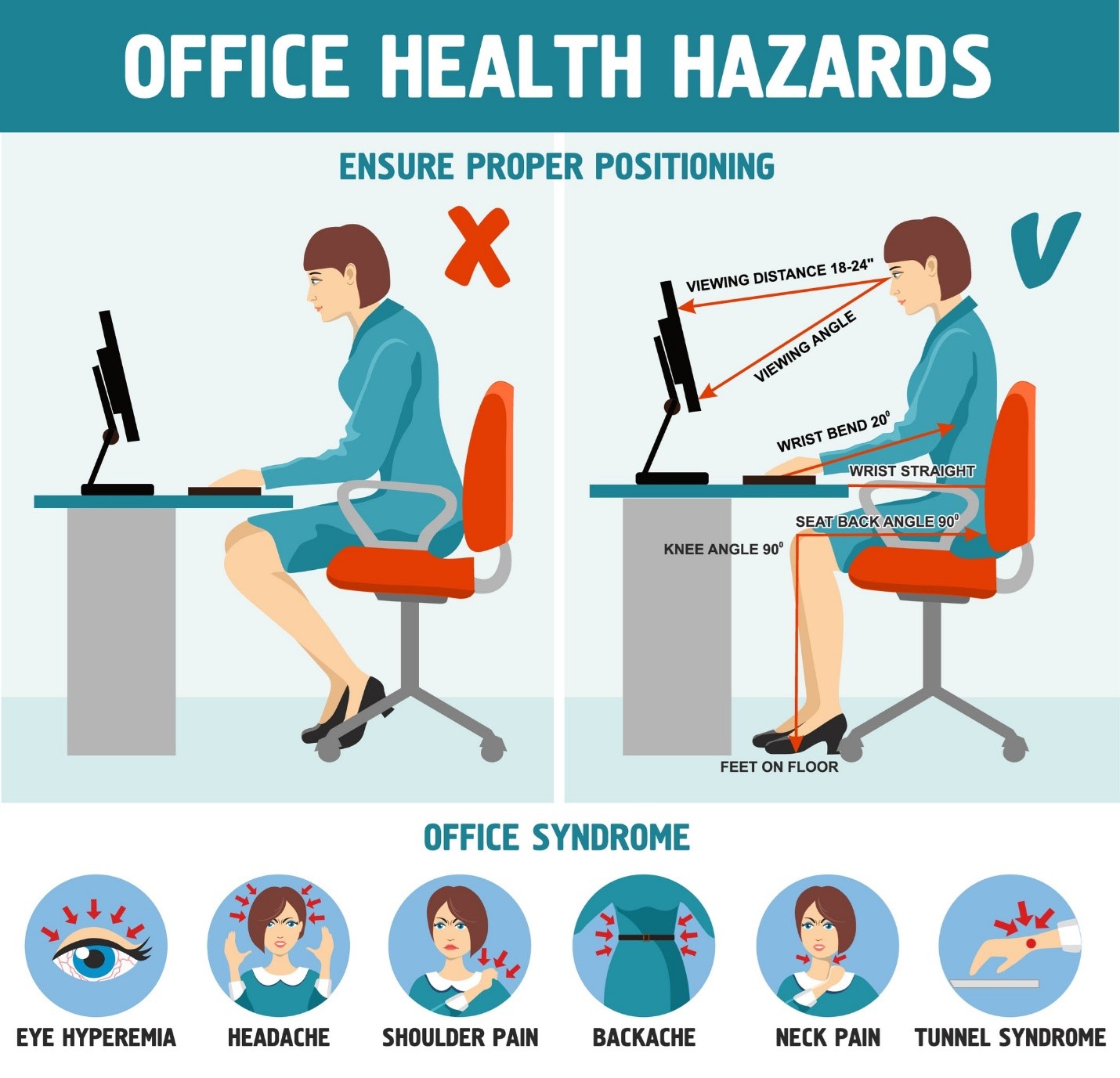 - จัดสภาพแวดล้อมให้เหมาะสม: จัดโต๊ะทำงาน, เก้าอี้ และคอมพิวเตอร์ให้อยู่ในตำแหน่งที่เหมาะสมกับสรีระ