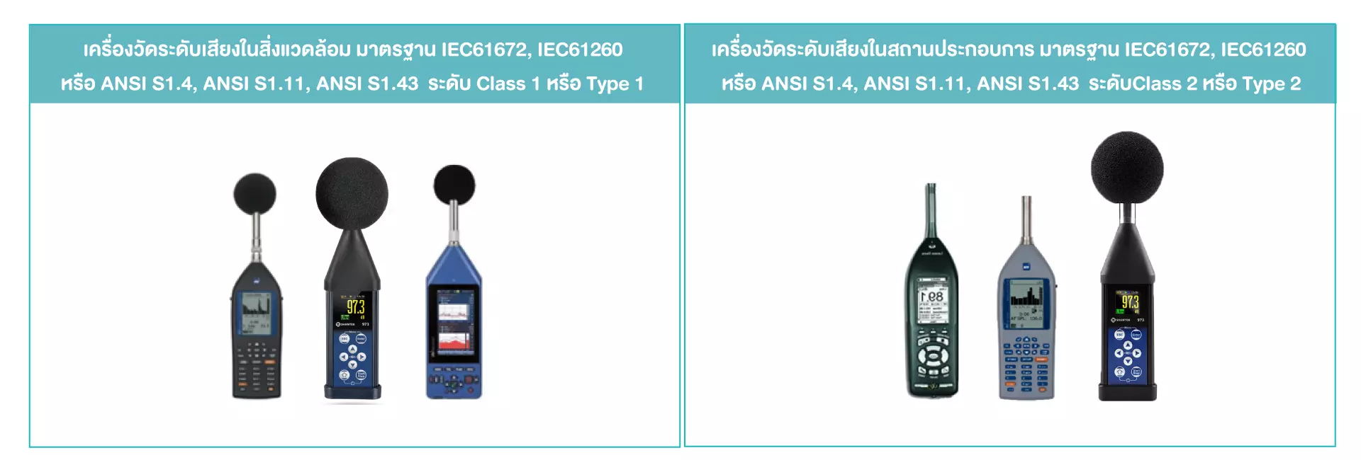 - มาตรฐานของประเทศไทย: กฎหมายที่เกี่ยวข้องกับการควบคุมระดับเสียง เช่น กฎหมายของ กรมควบคุมมลพิษ และ กรมสวัสดิการและคุ้มครองแรงงาน ซึ่งกำหนดขีดจำกัดความดังของเสียงที่อนุญาตในแต่ละพื้นที่หรือสถานที่ทำงาน