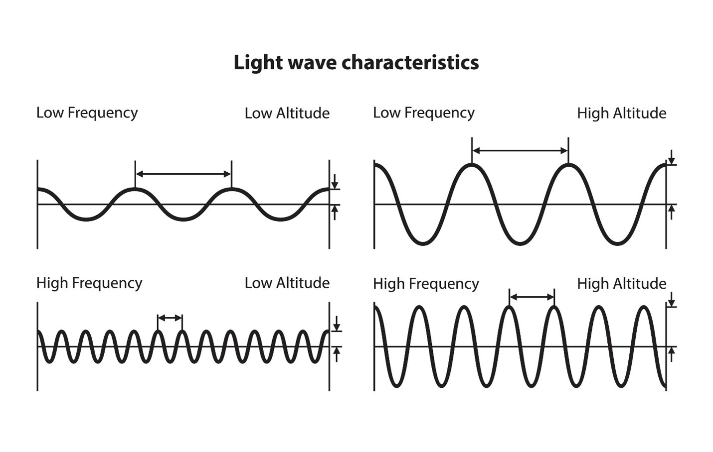 - ความยาวคลื่น (Wavelength): คือระยะทางระหว่างยอดคลื่นหนึ่งถึงยอดคลื่นถัดไป มีความสัมพันธ์ผกผันกับความถี่