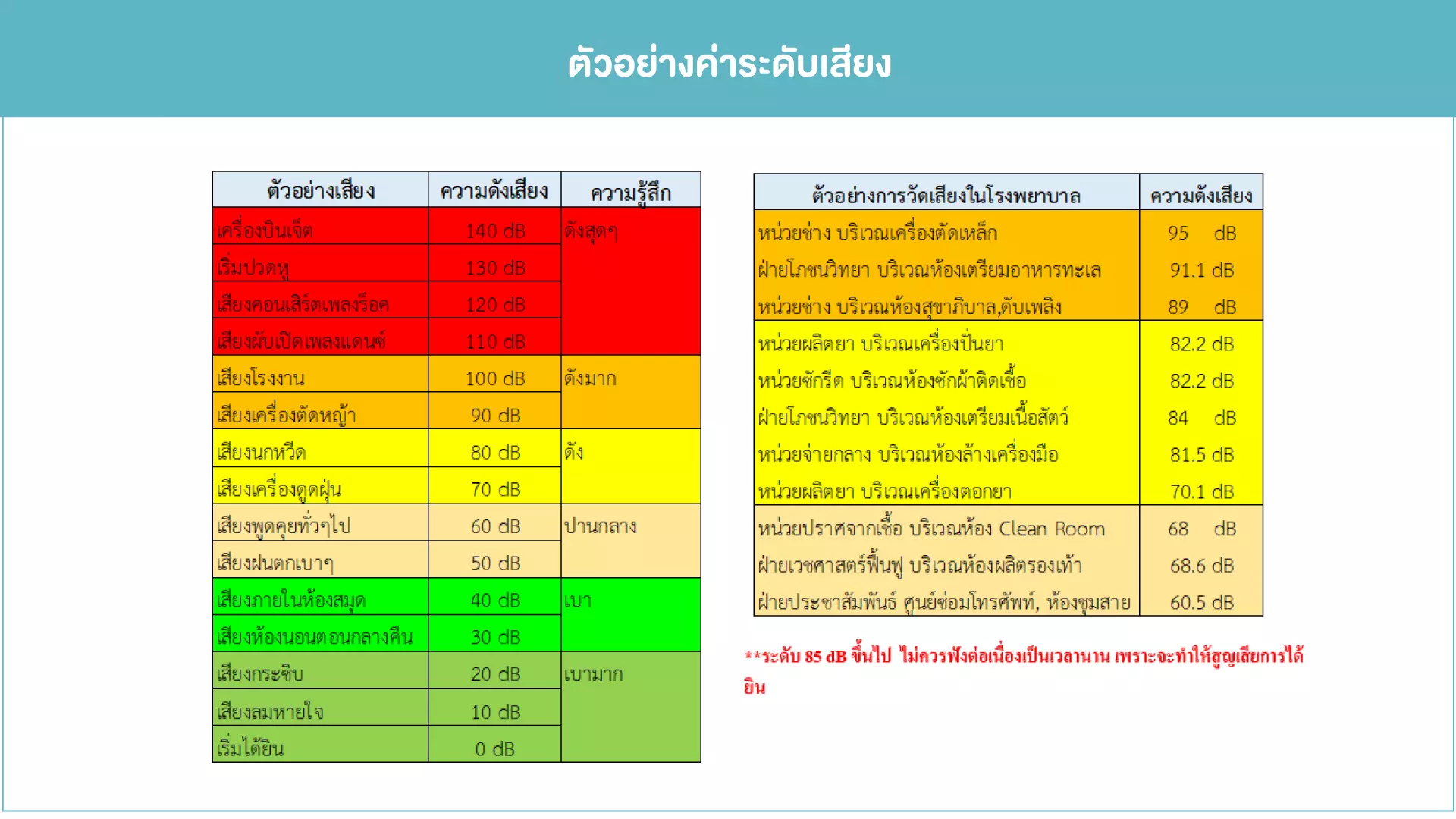 1.ระดับความดังของเสียงในพื้นที่ (dBA)